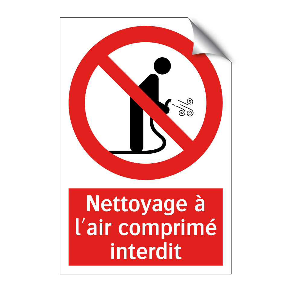 Panneau d'interdiction avec le texte : "Nettoyage à l'air comprimé interdit" et une symbolique claire.