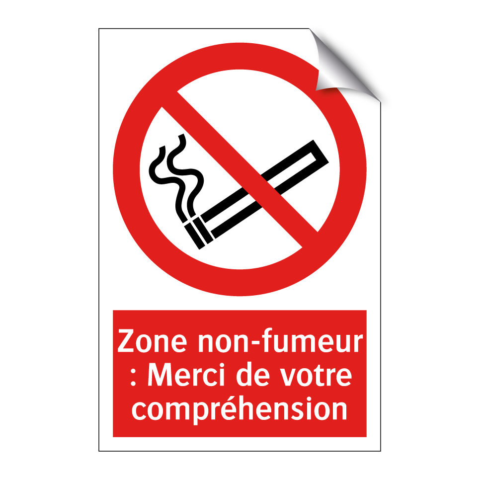 Panneau d'interdiction avec le texte : "Zone non-fumeur : Merci de votre compréhension" et une symbolique claire.