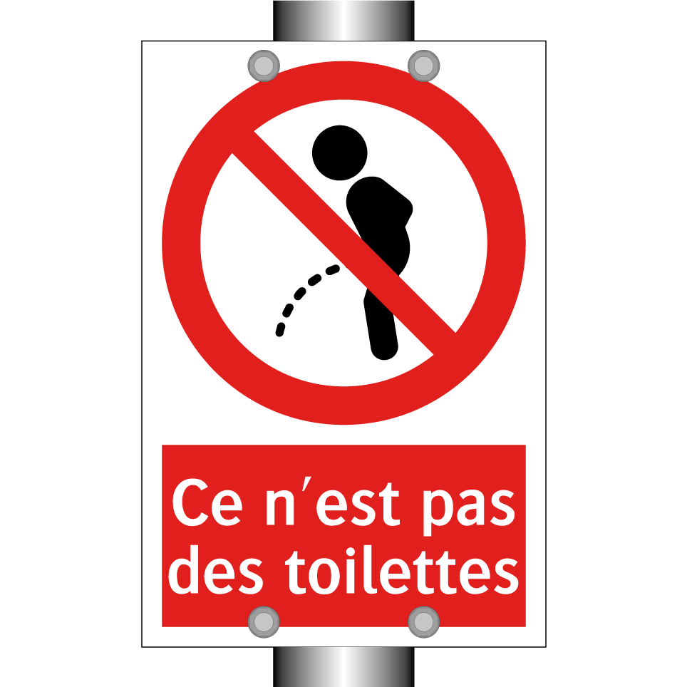 Panneau d'interdiction avec le texte : "Ce n'est pas des toilettes" et une symbolique claire.