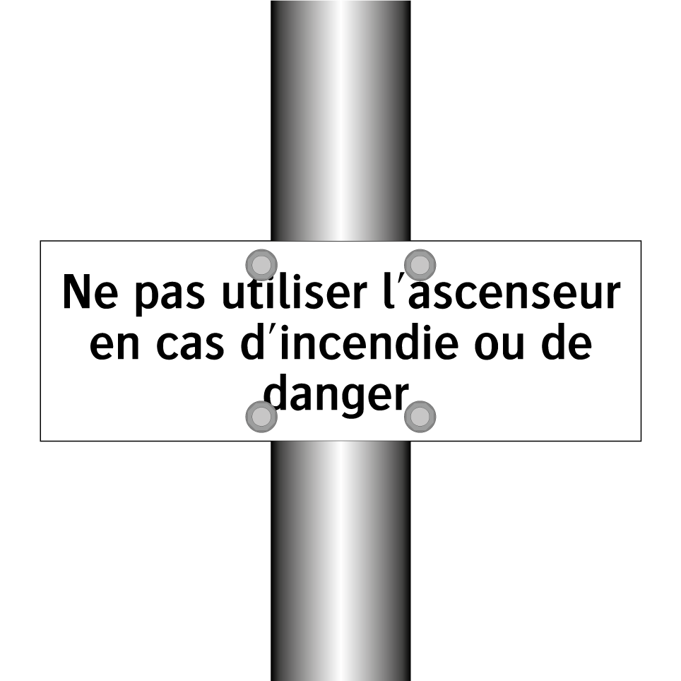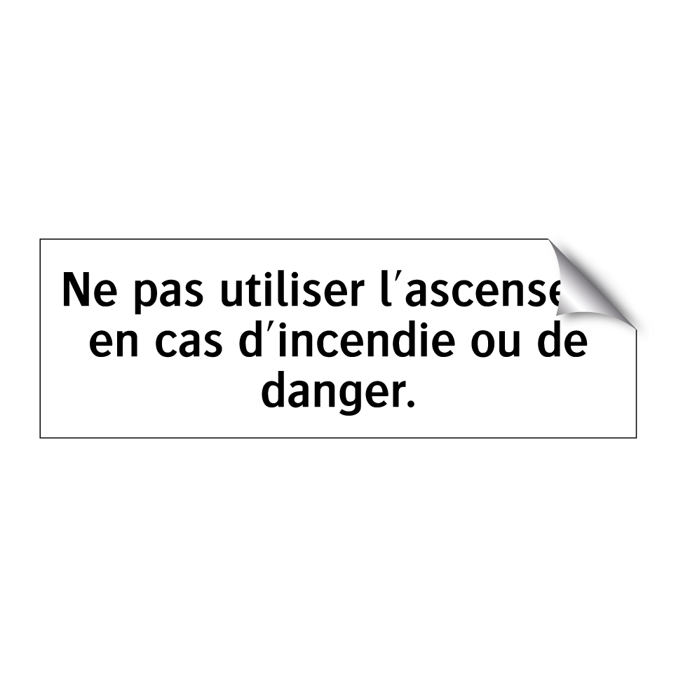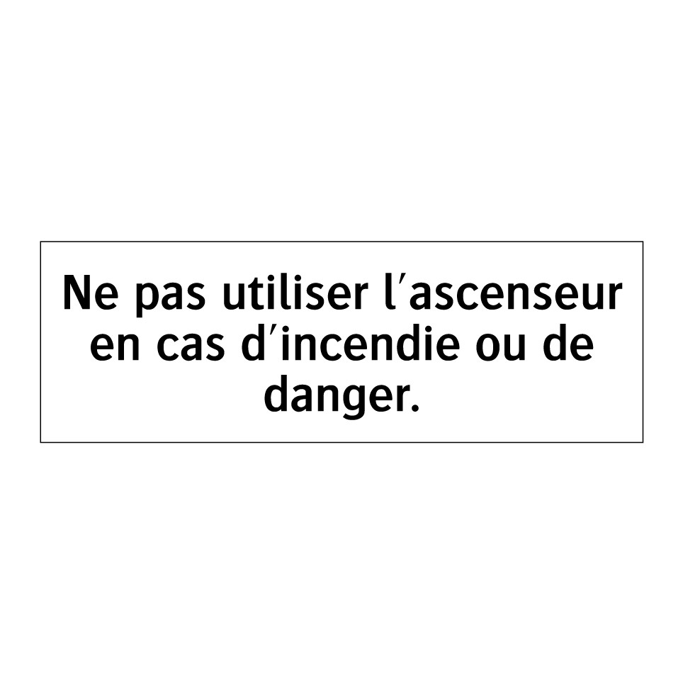 Panneau d'interdiction avec le texte : "Ne pas utiliser l'ascenseur en cas d'incendie ou de danger."