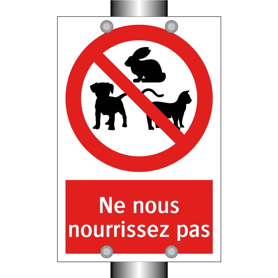 Panneau d'interdiction avec le texte : "Ne nous nourrissez pas" et une symbolique claire.