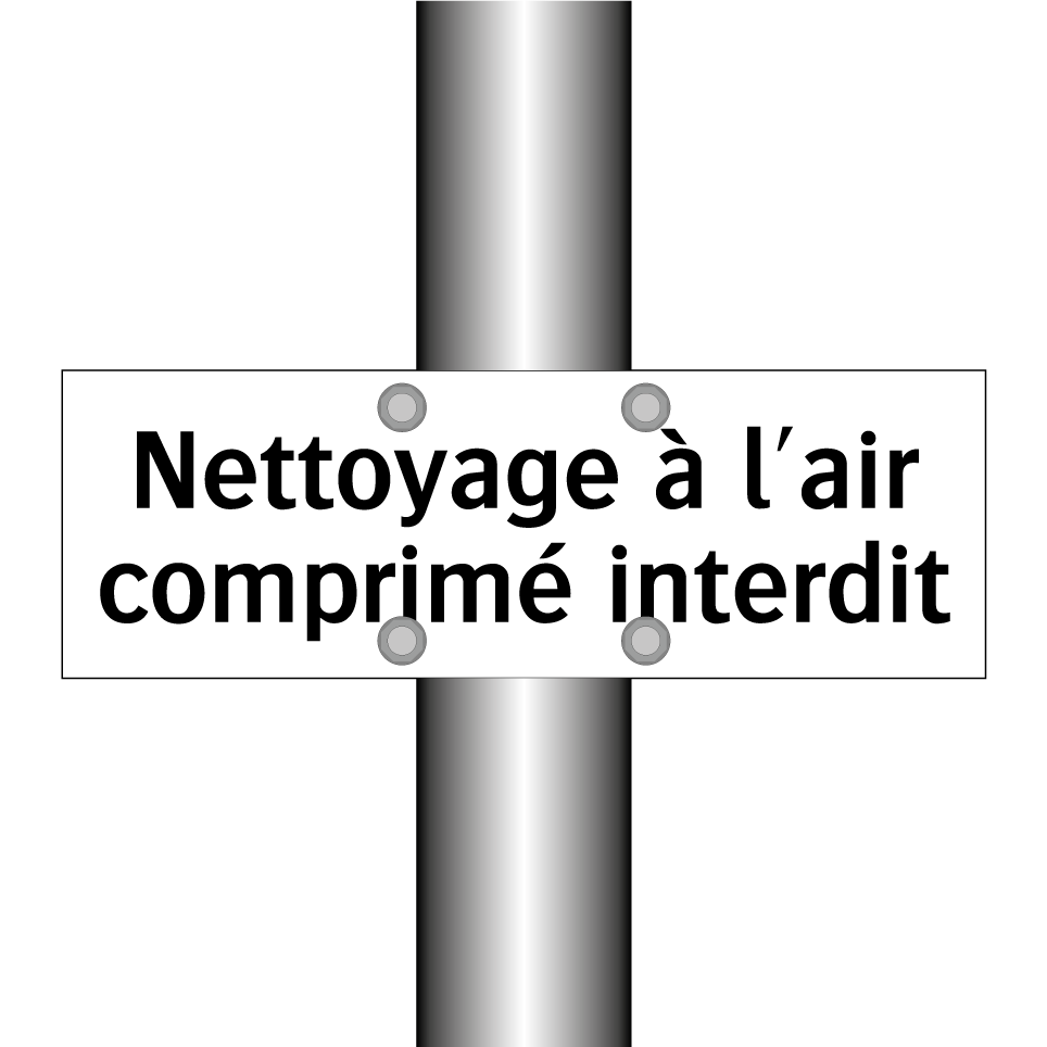 Panneau d'interdiction avec le texte : "Nettoyage à l'air comprimé interdit"