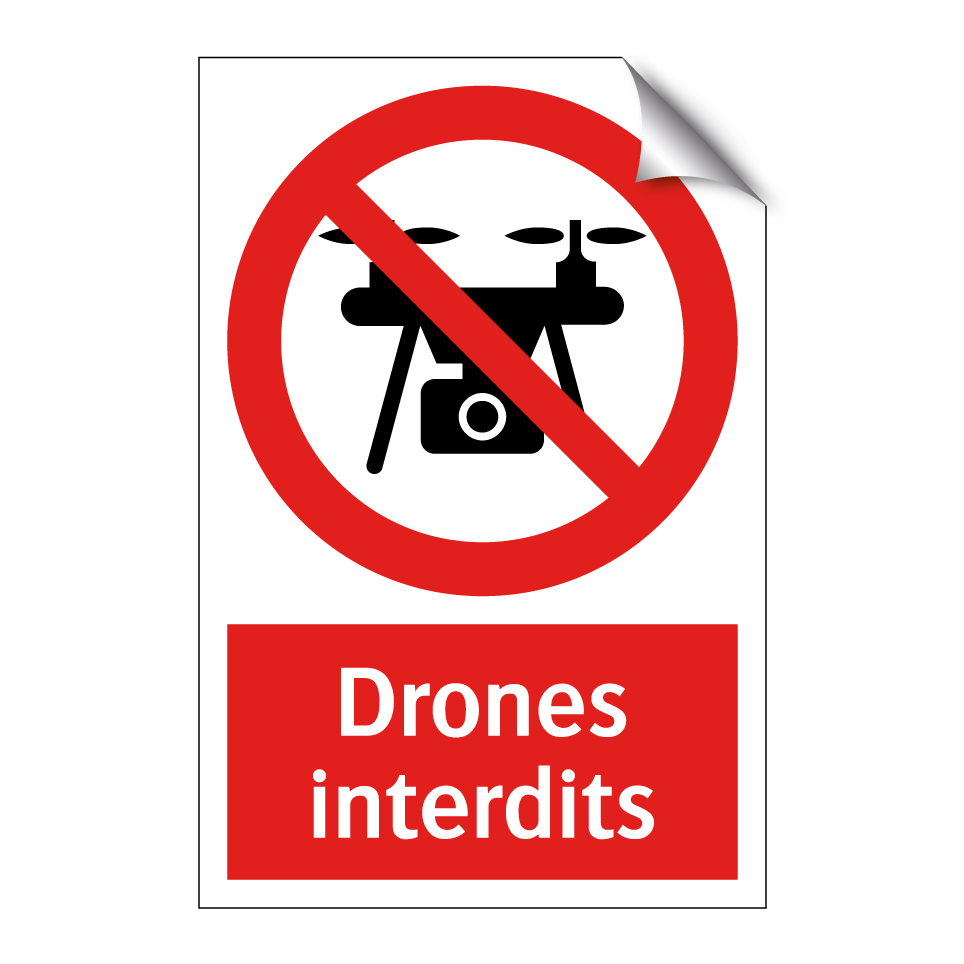 Panneau d'interdiction avec le texte : "Drones interdits" et une symbolique claire.
