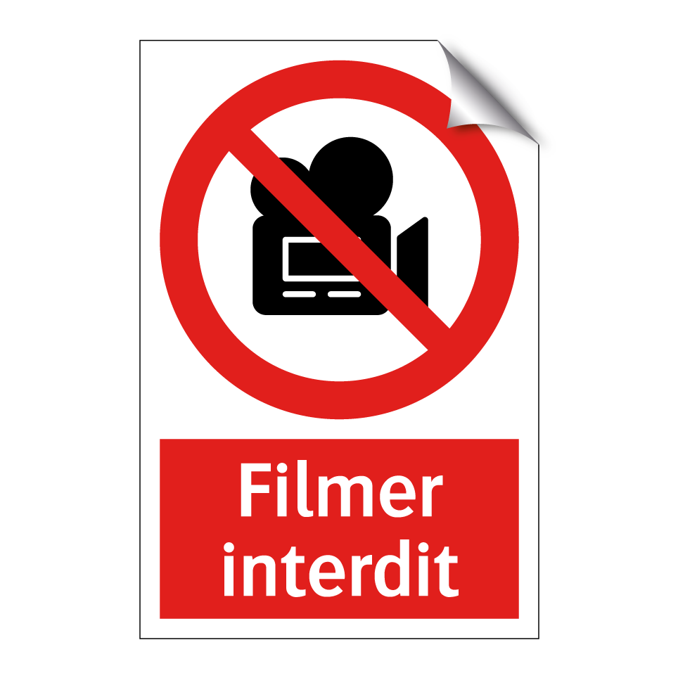 Panneau d'interdiction avec le texte : "Filmer interdit" et une symbolique claire.