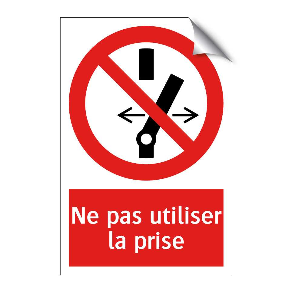 Panneau d'interdiction avec le texte : "Ne pas utiliser la prise" et une symbolique claire.