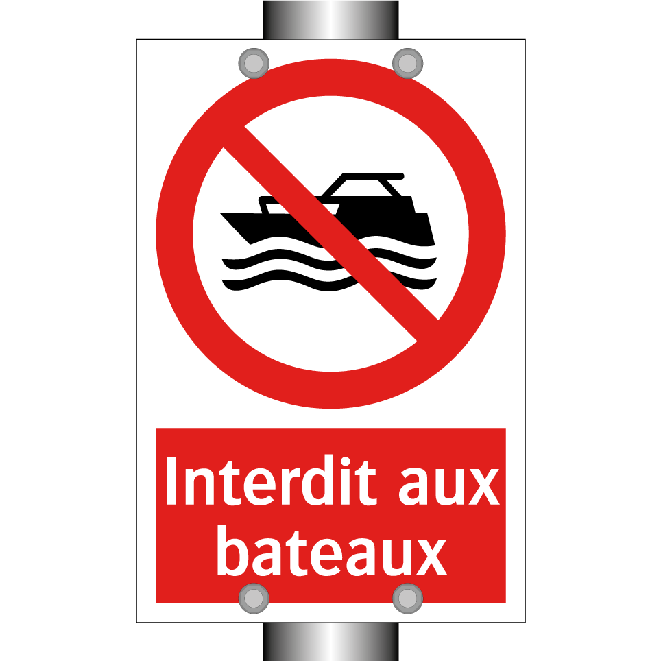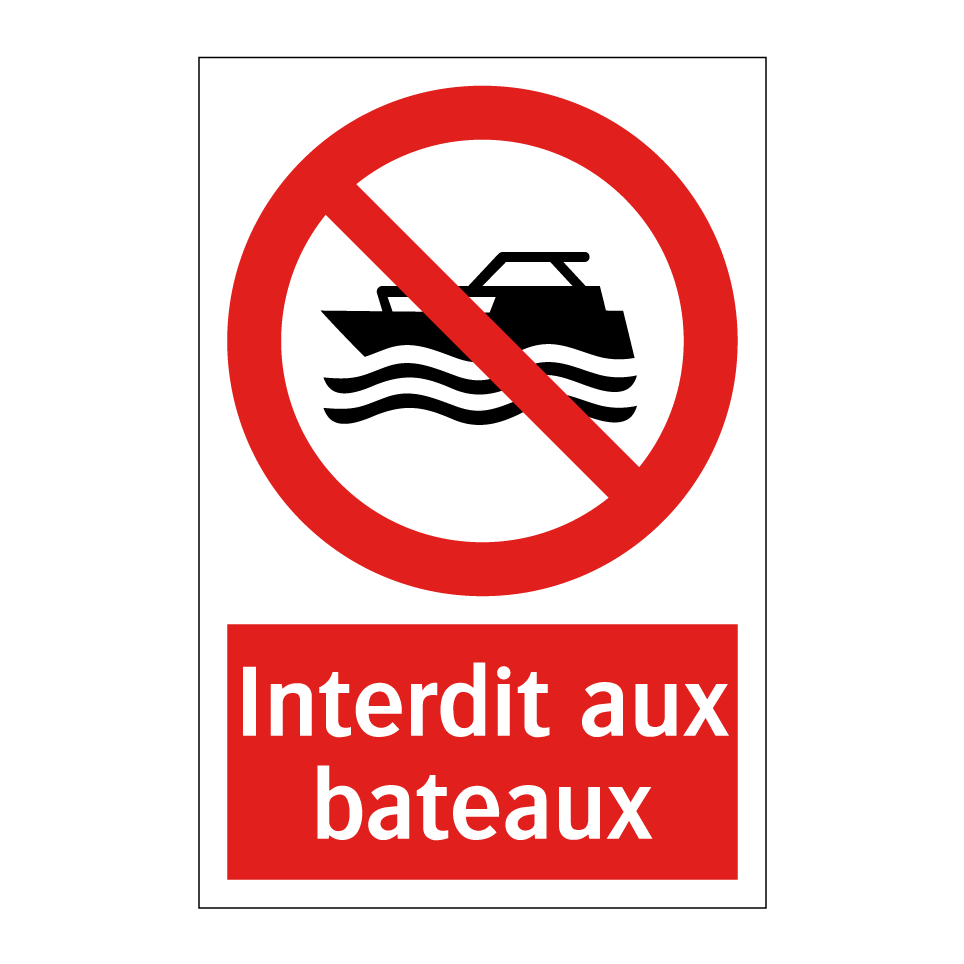 Panneau d'interdiction avec le texte : "Interdit aux bateaux" et une symbolique claire.