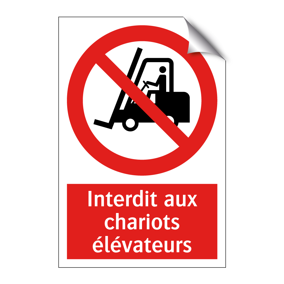 Panneau d'interdiction avec le texte : "Interdit aux chariots élévateurs" et une symbolique claire.