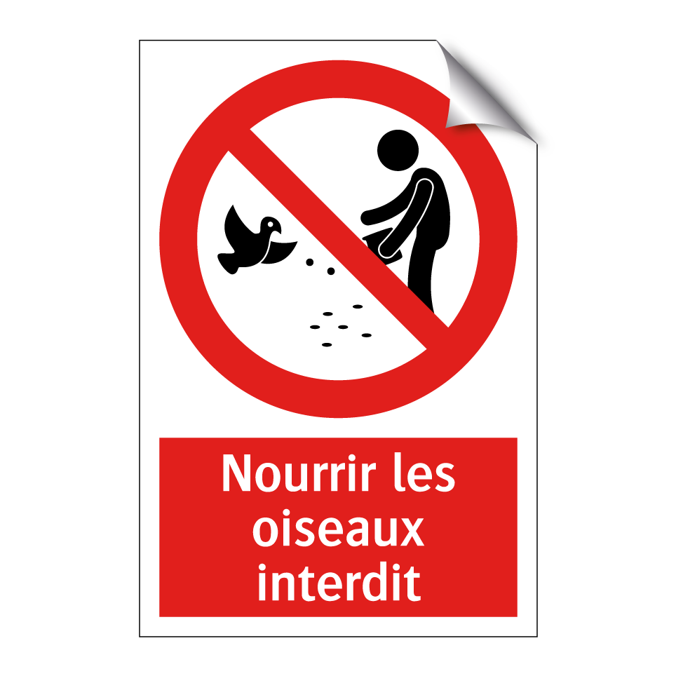 Panneau d'interdiction avec le texte : "Nourrir les oiseaux interdit" et une symbolique claire.