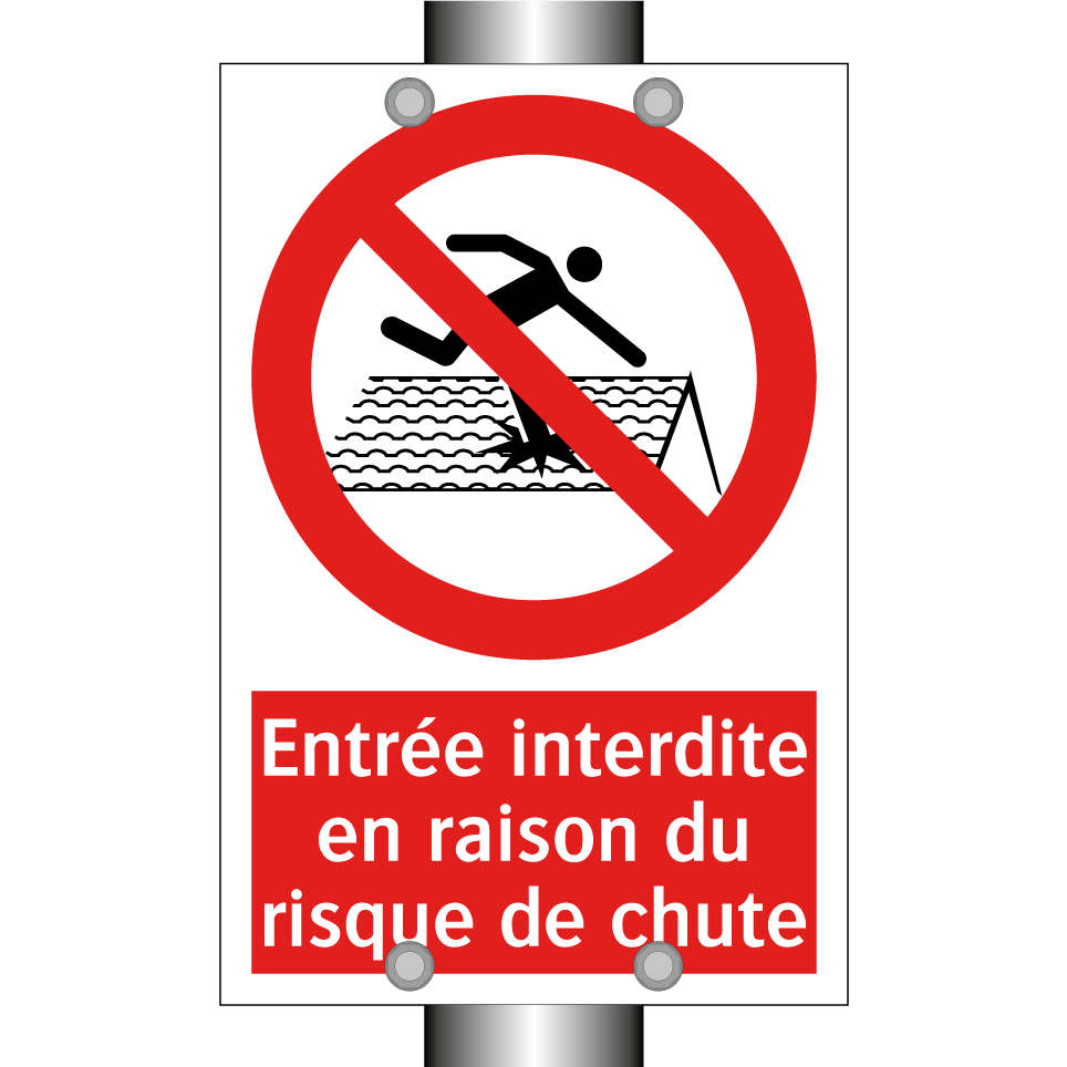 Panneau d'interdiction avec le texte : "Entrée interdite en raison du risque de chute" et une symbolique claire.
