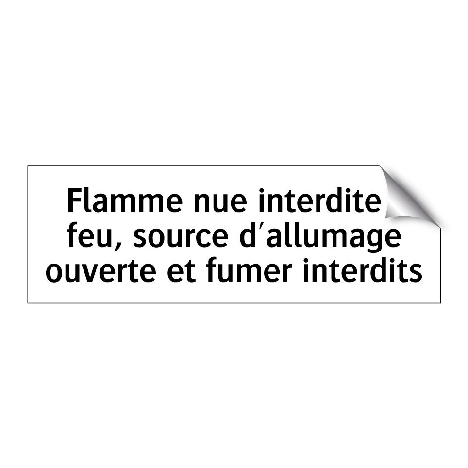 Panneau d'interdiction avec le texte : "Flamme nue interdite : feu, source d'allumage ouverte et fumer interdits"