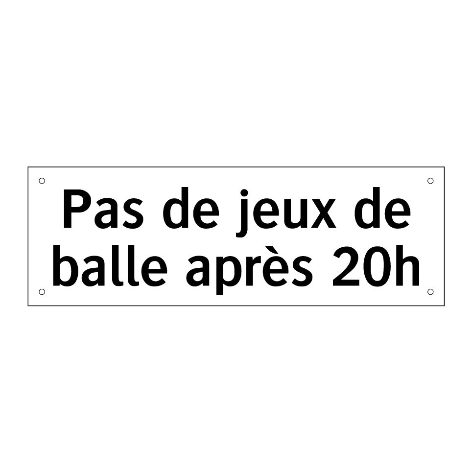 Panneau d'interdiction avec le texte : "Pas de jeux de balle après 20h"