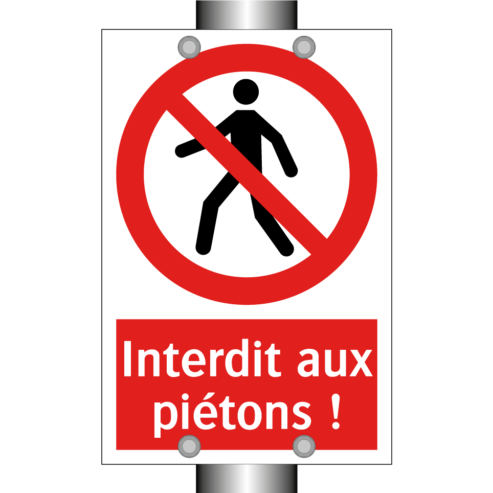 Panneau d'interdiction avec le texte : "Interdit aux piétons !" et une symbolique claire.
