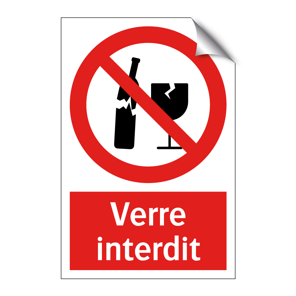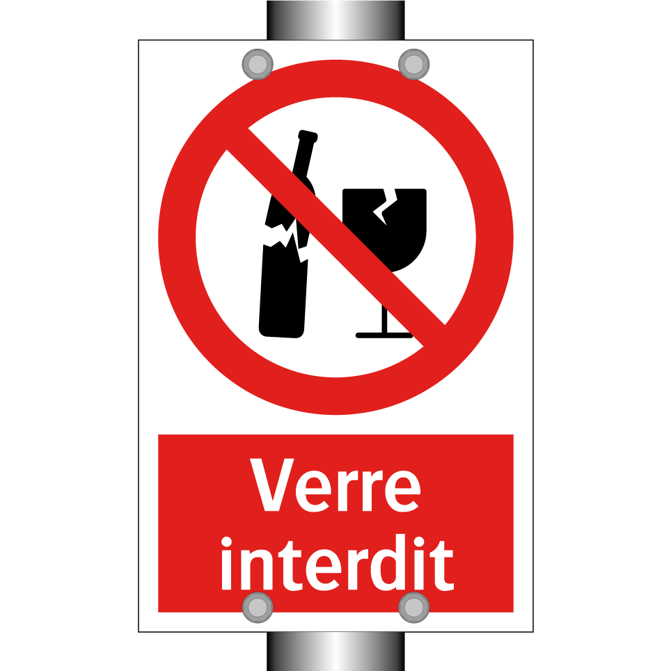 Panneau d'interdiction avec le texte : "Verre interdit" et une symbolique claire.