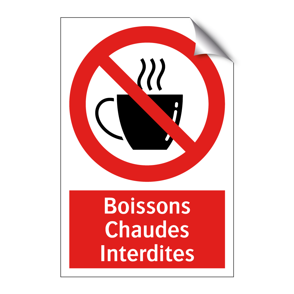 Panneau d'interdiction avec le texte : "Boissons Chaudes Interdites" et une symbolique claire.