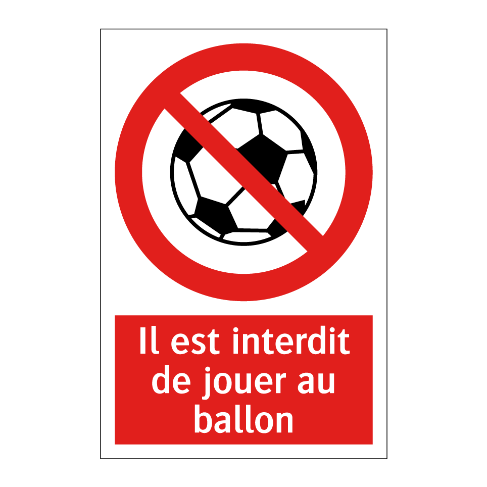 Panneau d'interdiction avec le texte : "Il est interdit de jouer au ballon" et une symbolique claire.