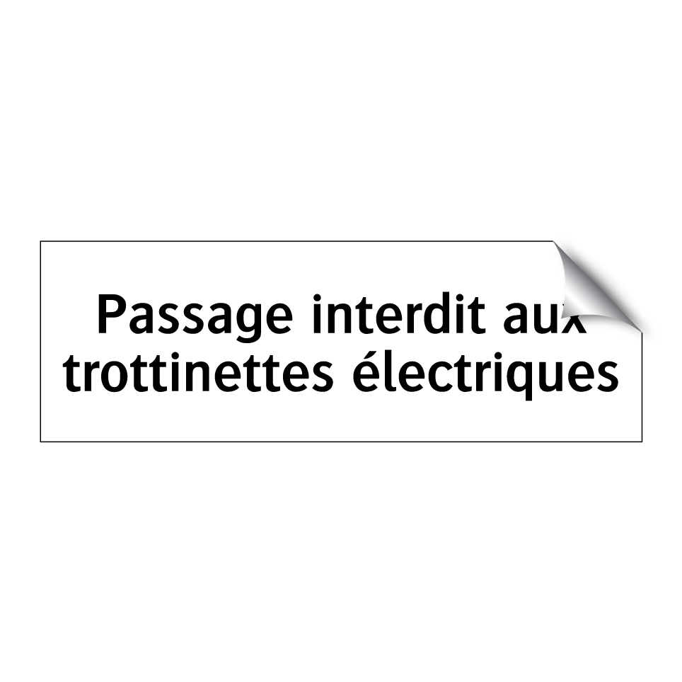 Panneau d'interdiction avec le texte : "Passage interdit aux trottinettes électriques"