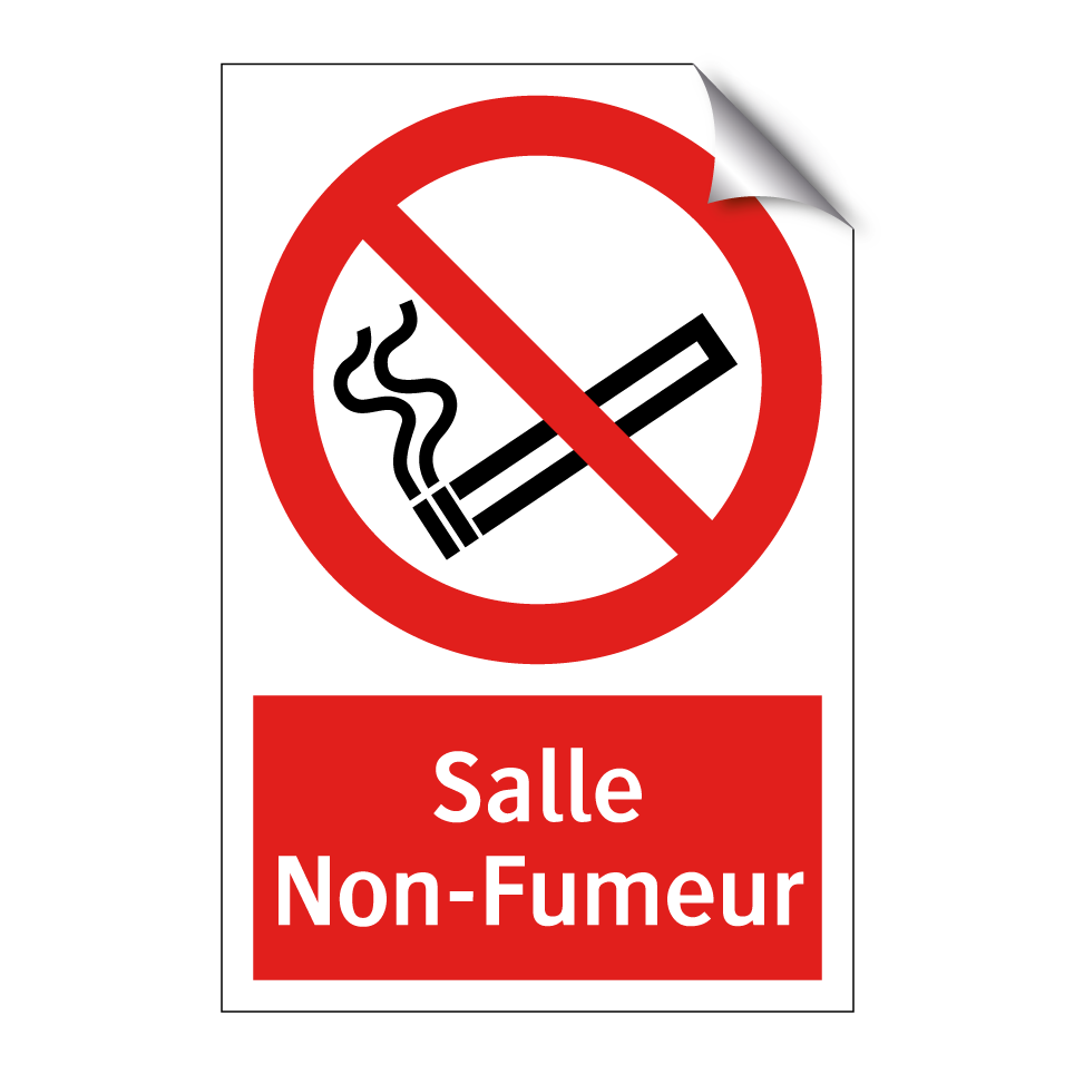 Panneau d'interdiction avec le texte : "Salle Non-Fumeur" et une symbolique claire.