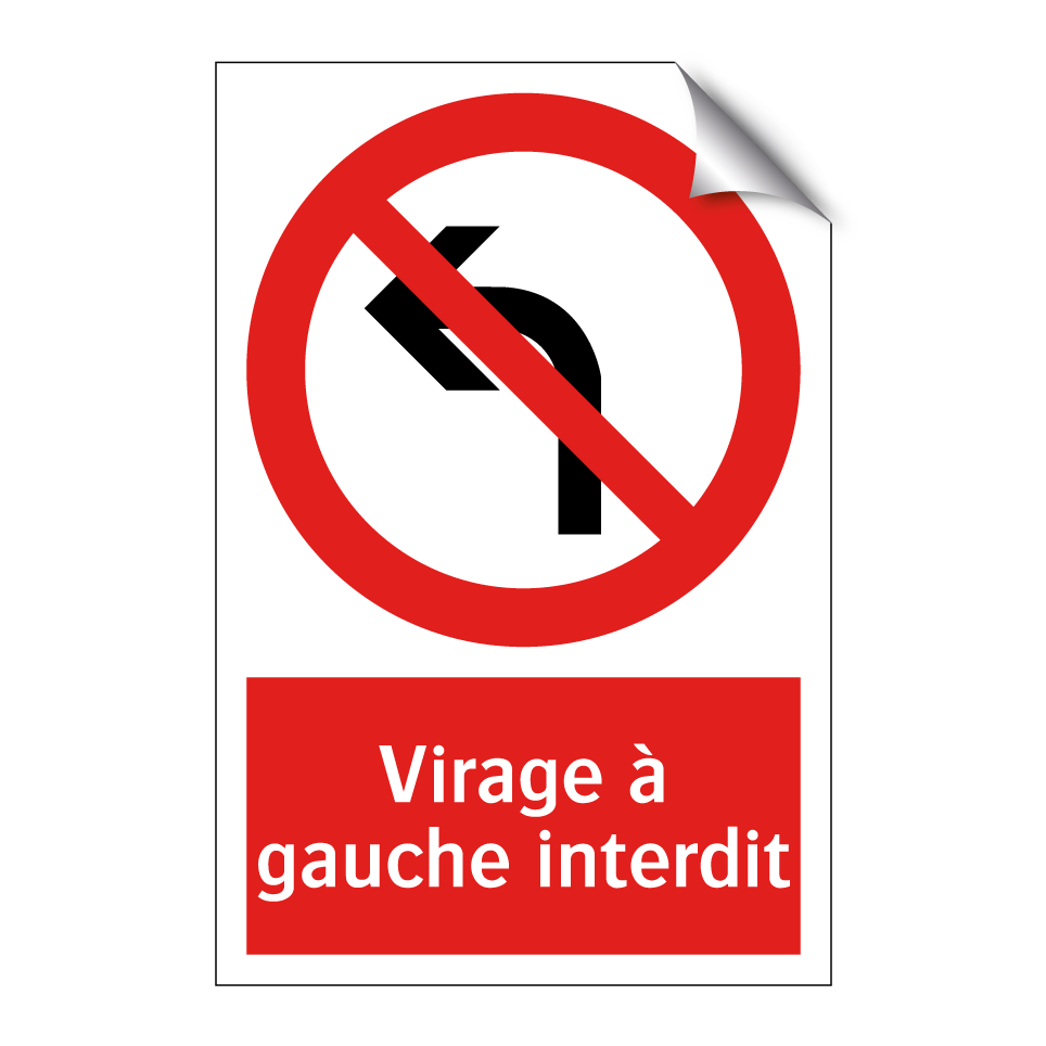 Panneau d'interdiction avec le texte : "Virage à gauche interdit" et une symbolique claire.