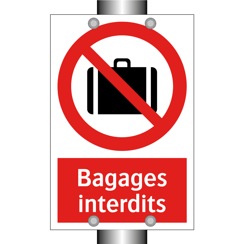 Panneau d'interdiction avec le texte : "Bagages interdits" et une symbolique claire.