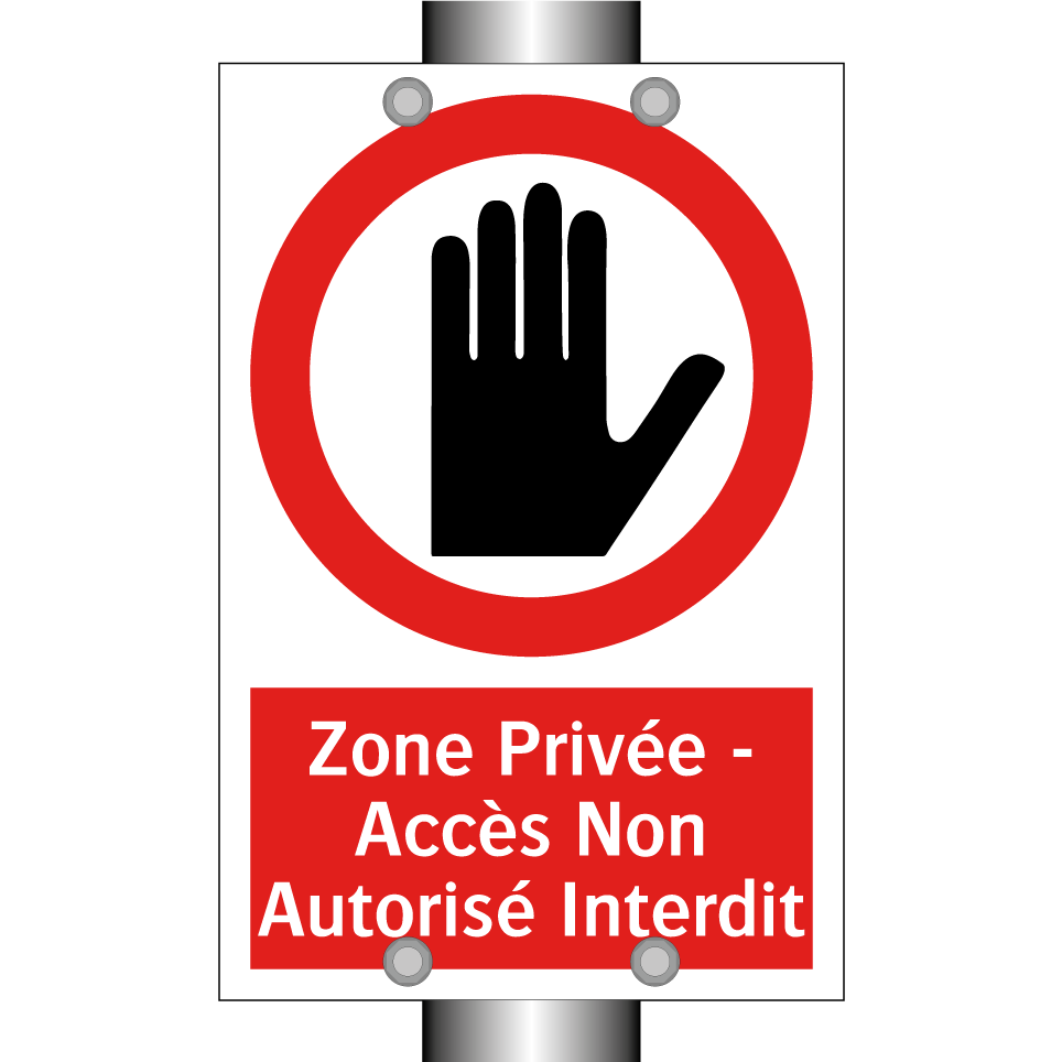 Panneau d'interdiction avec le texte : "Zone Privée - Accès Non Autorisé Interdit" et une symbolique claire.