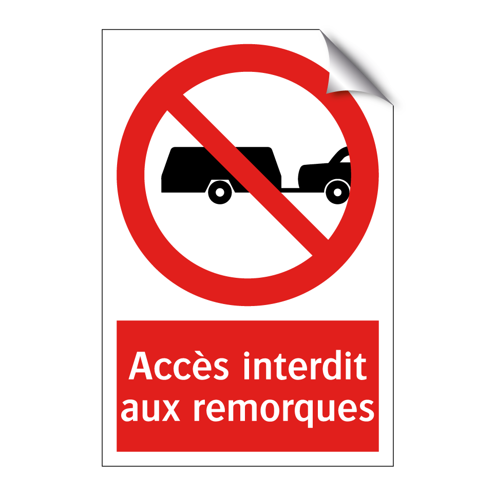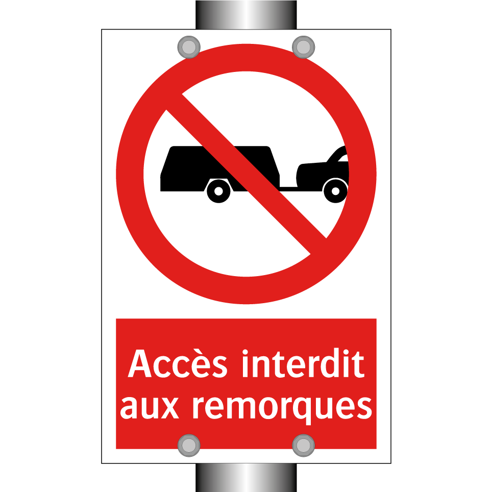 Panneau d'interdiction avec le texte : "Accès interdit aux remorques" et une symbolique claire.