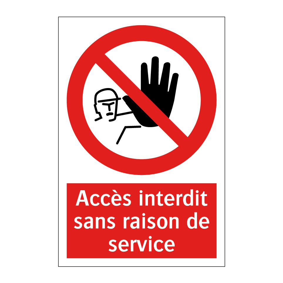 Panneau d'interdiction avec le texte : "Accès interdit sans raison de service" et une symbolique claire.