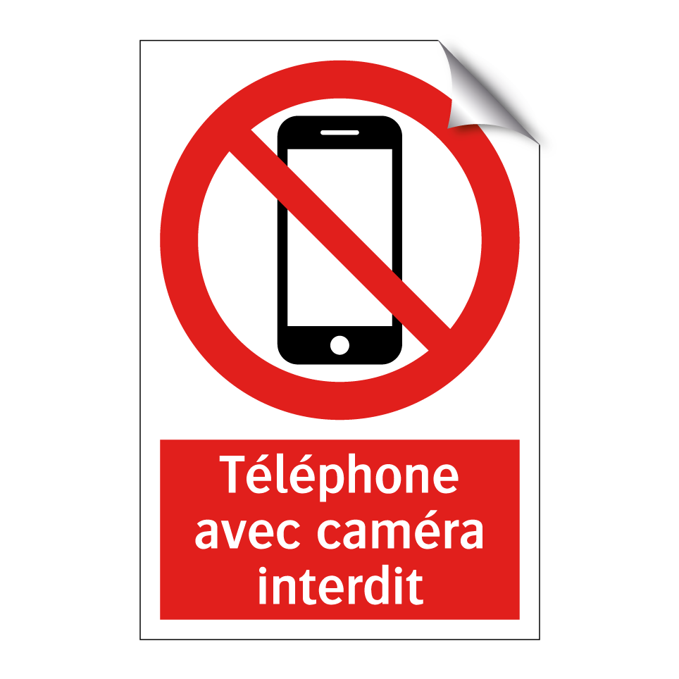 Panneau d'interdiction avec le texte : "Téléphone avec caméra interdit" et une symbolique claire.