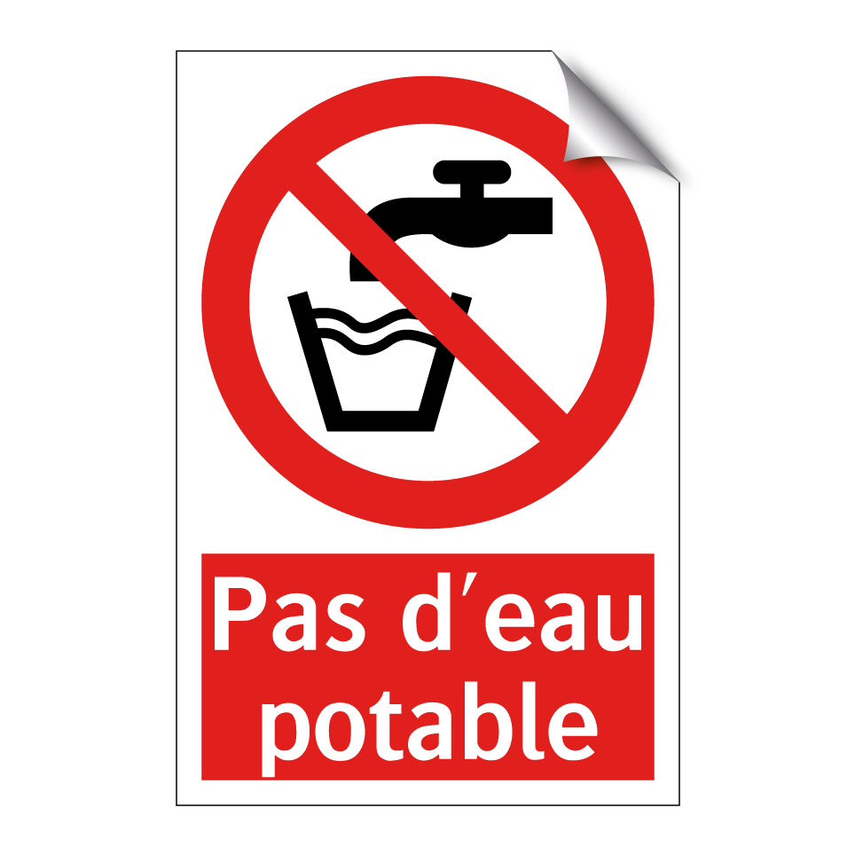 Panneau d'interdiction avec le texte : "Pas d'eau potable" et une symbolique claire.