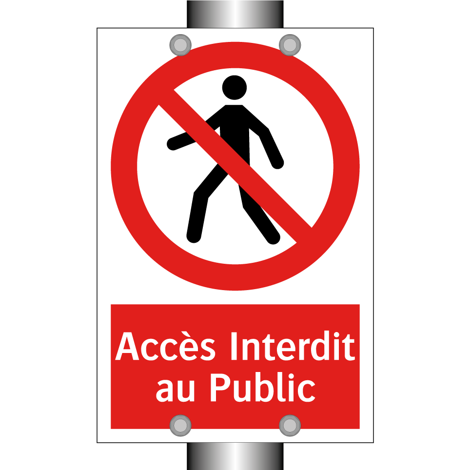 Panneau d'interdiction avec le texte : "Accès Interdit au Public" et une symbolique claire.
