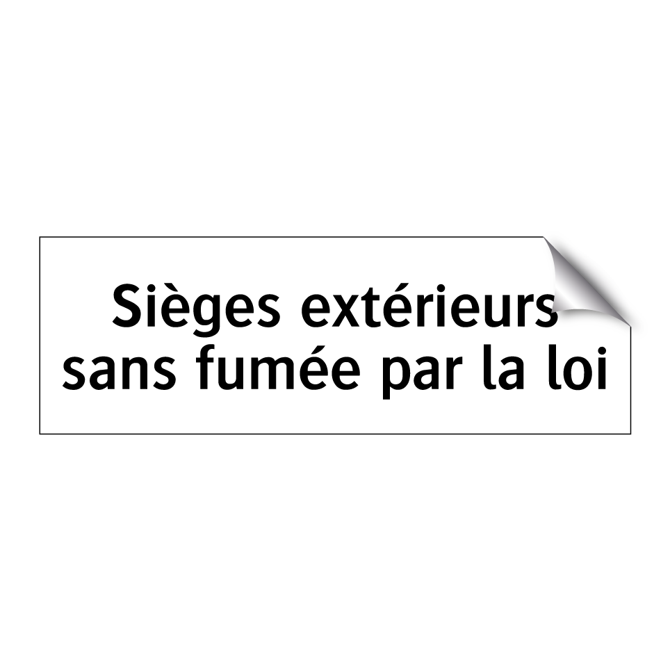 Panneau d'interdiction avec le texte : "Sièges extérieurs sans fumée par la loi"