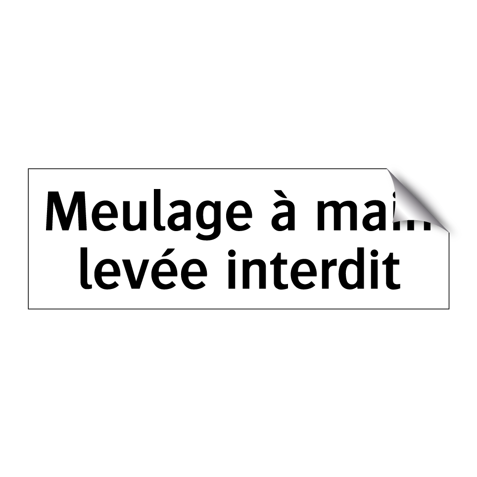 Panneau d'interdiction avec le texte : "Meulage à main levée interdit"