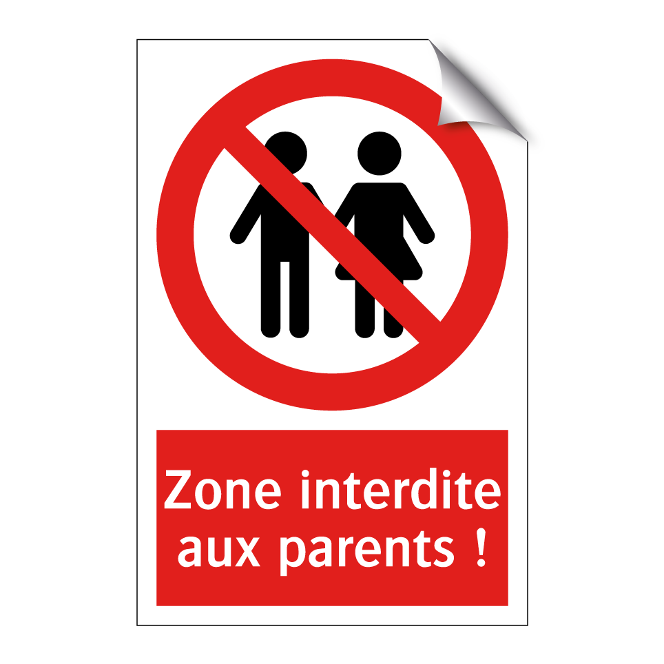 Panneau d'interdiction avec le texte : "Zone interdite aux parents !" et une symbolique claire.