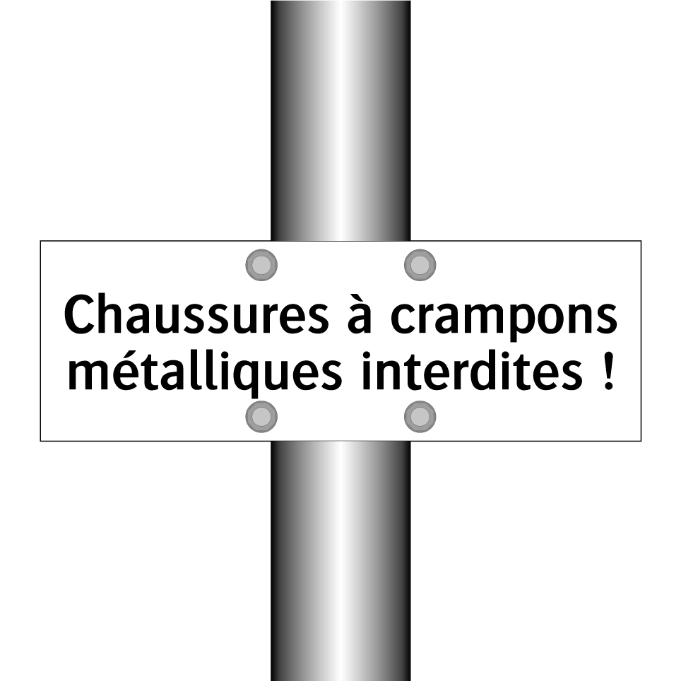 Panneau d'interdiction avec le texte : "Chaussures à crampons métalliques interdites !"