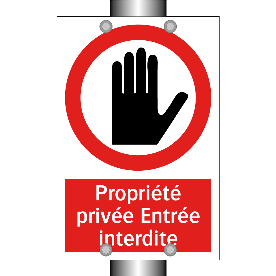 Panneau d'interdiction avec le texte : "Propriété privée Entrée interdite" et une symbolique claire.