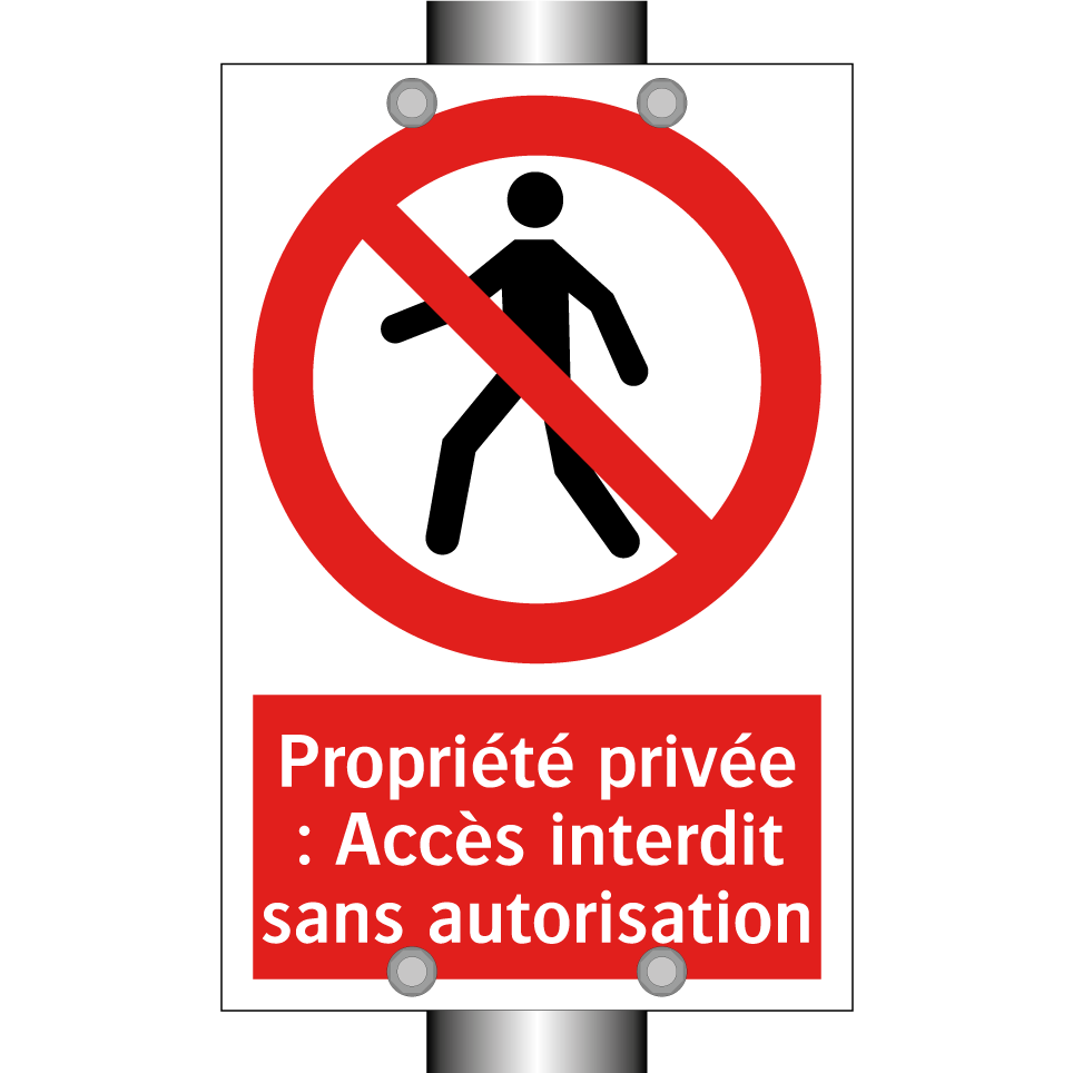 Panneau d'interdiction avec le texte : "Propriété privée : Accès interdit sans autorisation" et une symbolique claire.