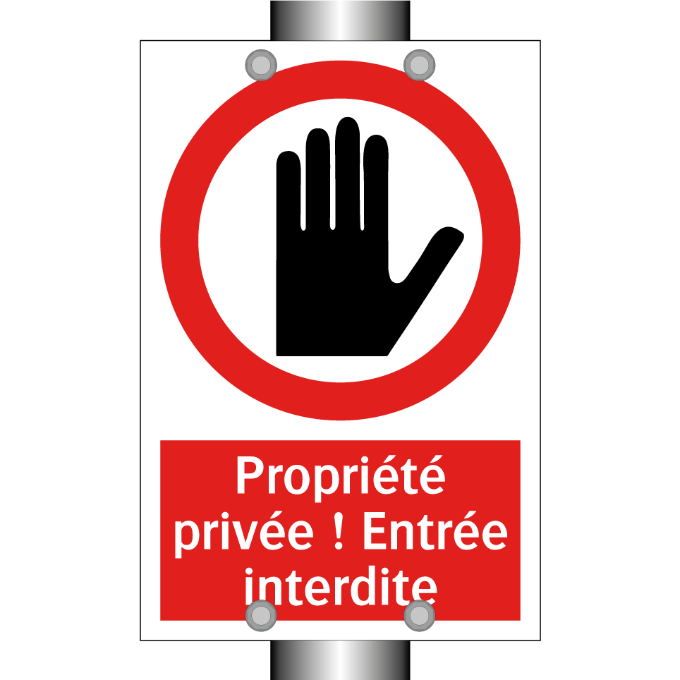 Panneau d'interdiction avec le texte : "Propriété privée ! Entrée interdite" et une symbolique claire.