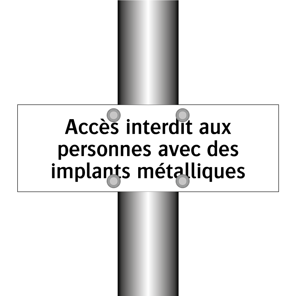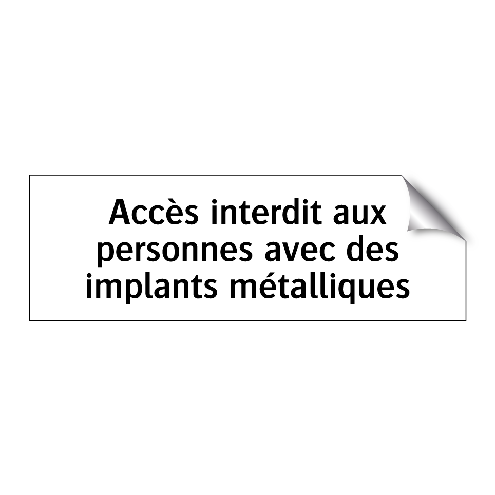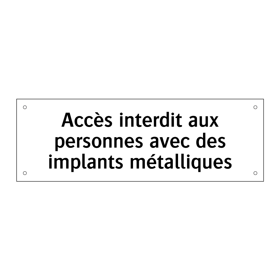 Panneau d'interdiction avec le texte : "Accès interdit aux personnes avec des implants métalliques"