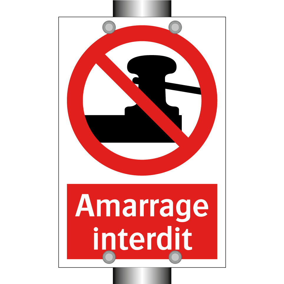 Panneau d'interdiction avec le texte : "Amarrage interdit" et une symbolique claire.