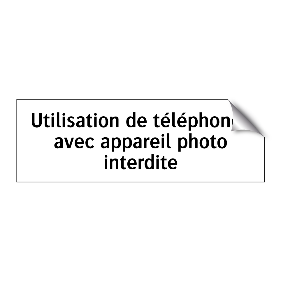 Panneau d'interdiction avec le texte : "Utilisation de téléphones avec appareil photo interdite"