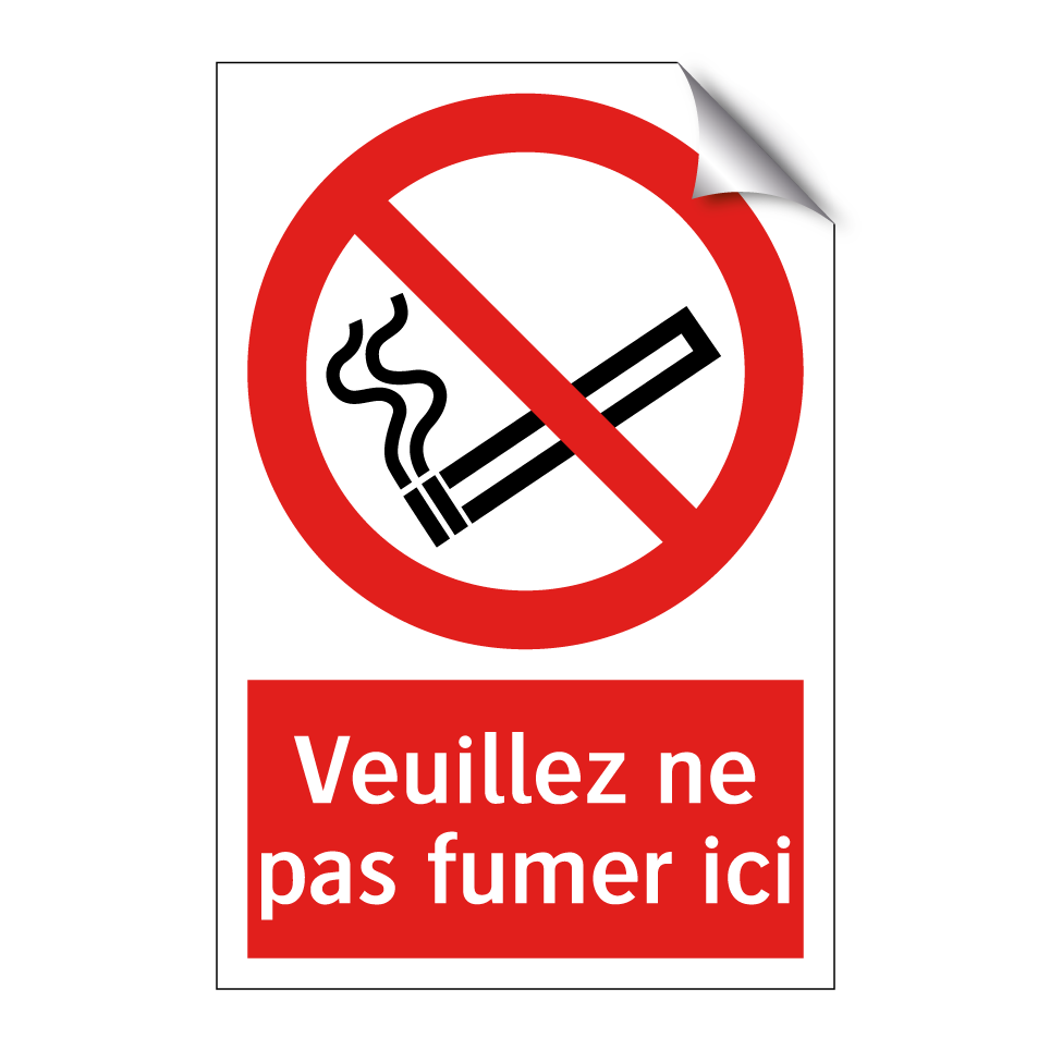 Panneau d'interdiction avec le texte : "Veuillez ne pas fumer ici" et une symbolique claire.