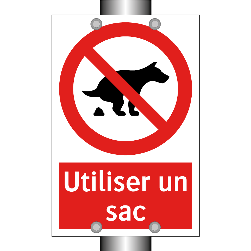 Panneau d'interdiction avec le texte : "Utiliser un sac" et une symbolique claire.