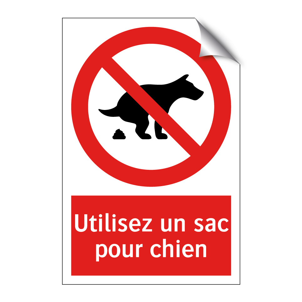 Panneau d'interdiction avec le texte : "Utilisez un sac pour chien" et une symbolique claire.