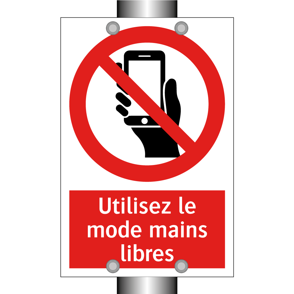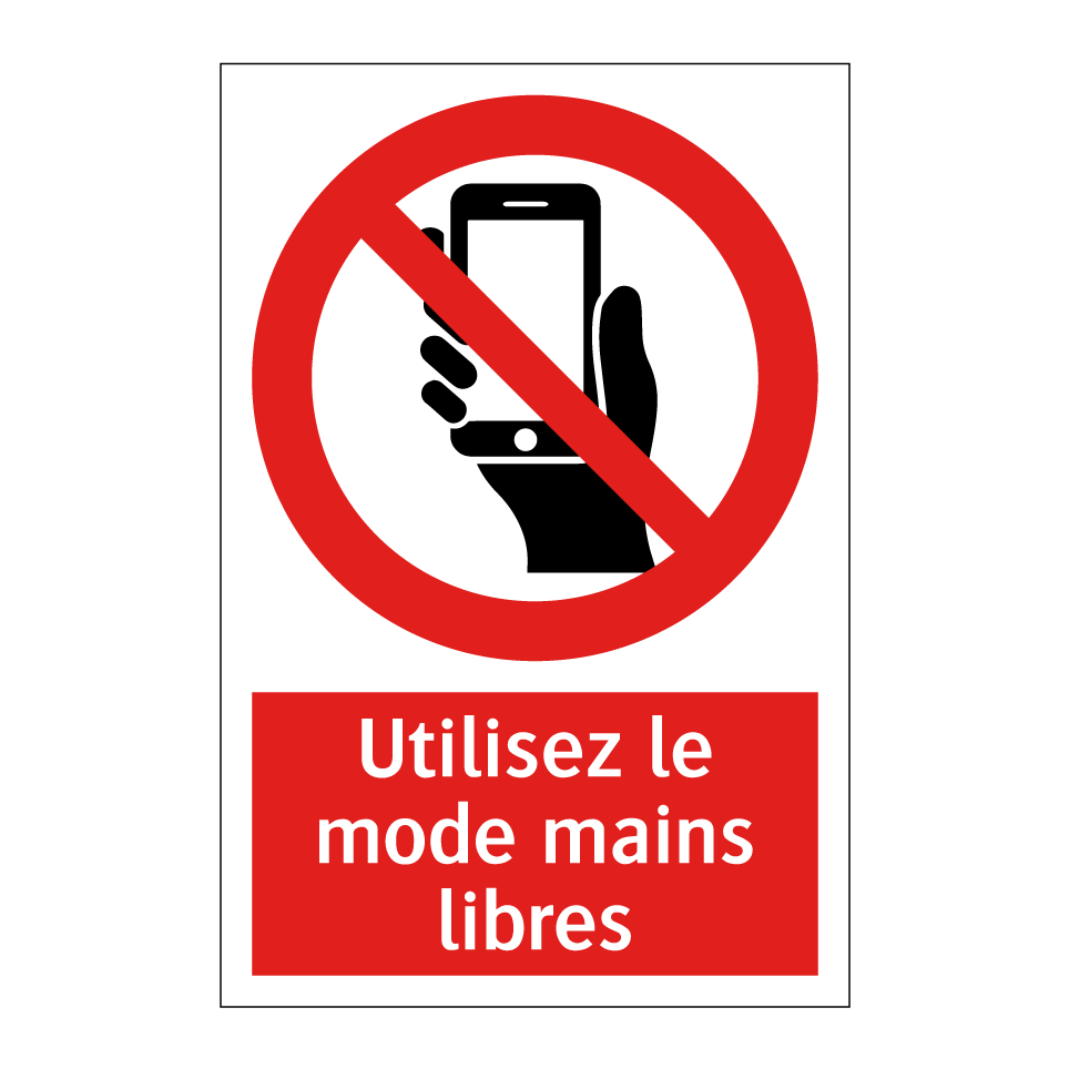 Panneau d'interdiction avec le texte : "Utilisez le mode mains libres" et une symbolique claire.