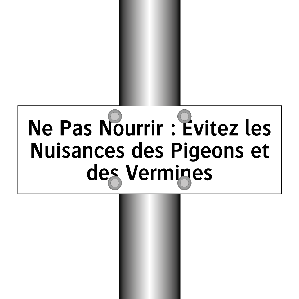 Panneau d'interdiction avec le texte : "Ne Pas Nourrir : Évitez les Nuisances des Pigeons et des Vermines"