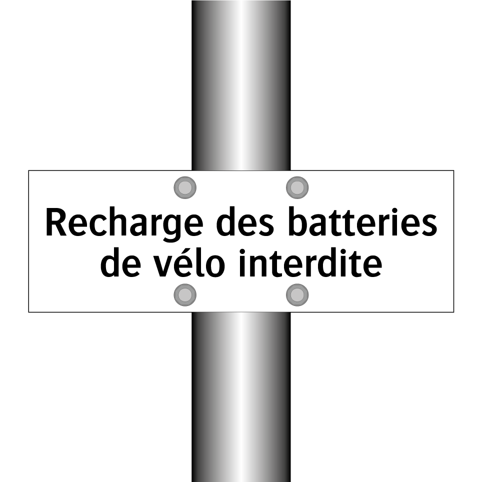 Panneau d'interdiction avec le texte : "Recharge des batteries de vélo interdite"