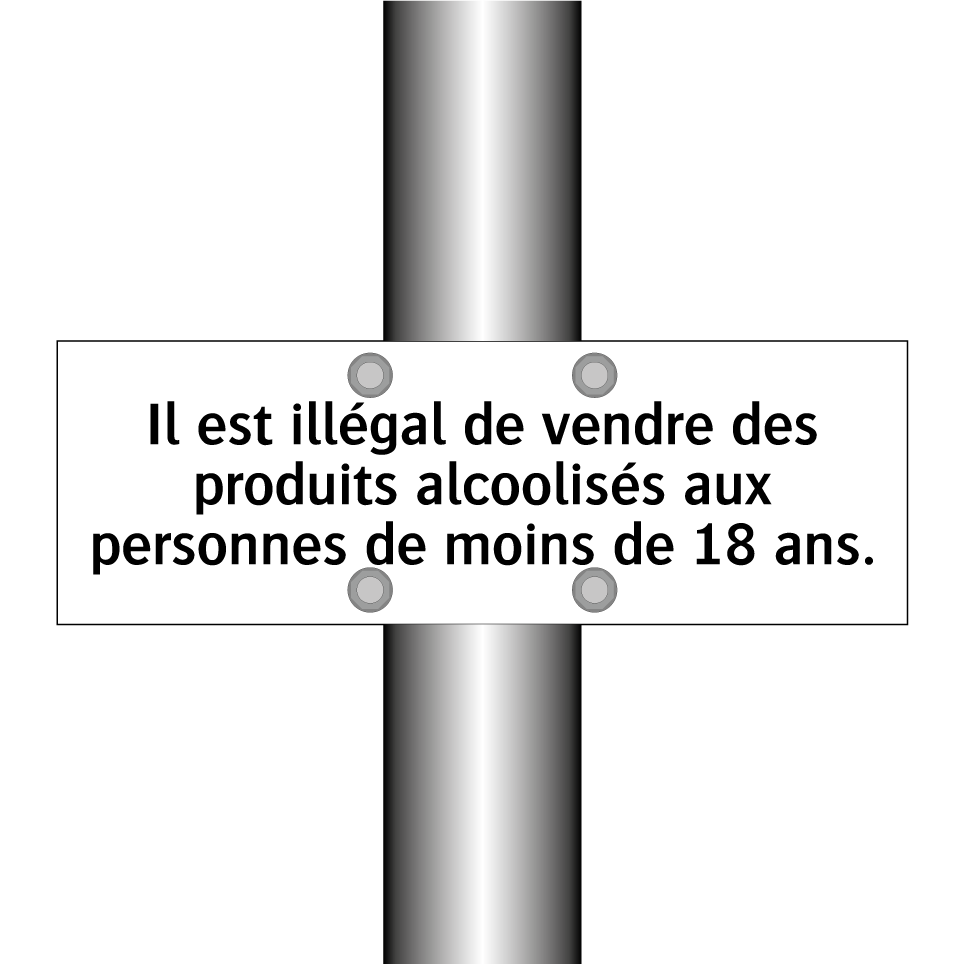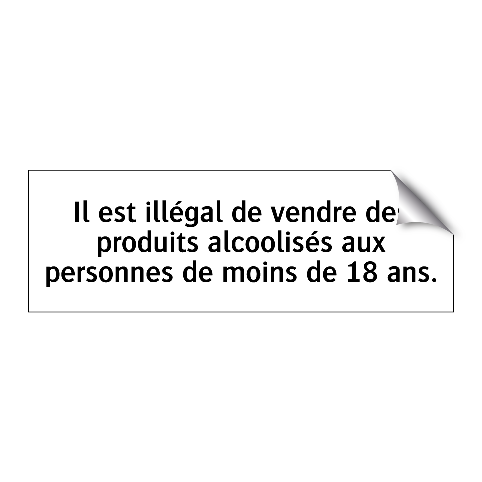 Panneau d'interdiction avec le texte : "Il est illégal de vendre des produits alcoolisés aux personnes de moins de 18 ans."