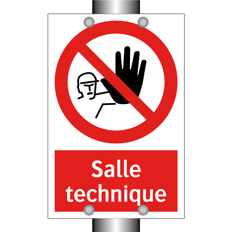 Panneau d'interdiction avec le texte : "Salle technique" et une symbolique claire.