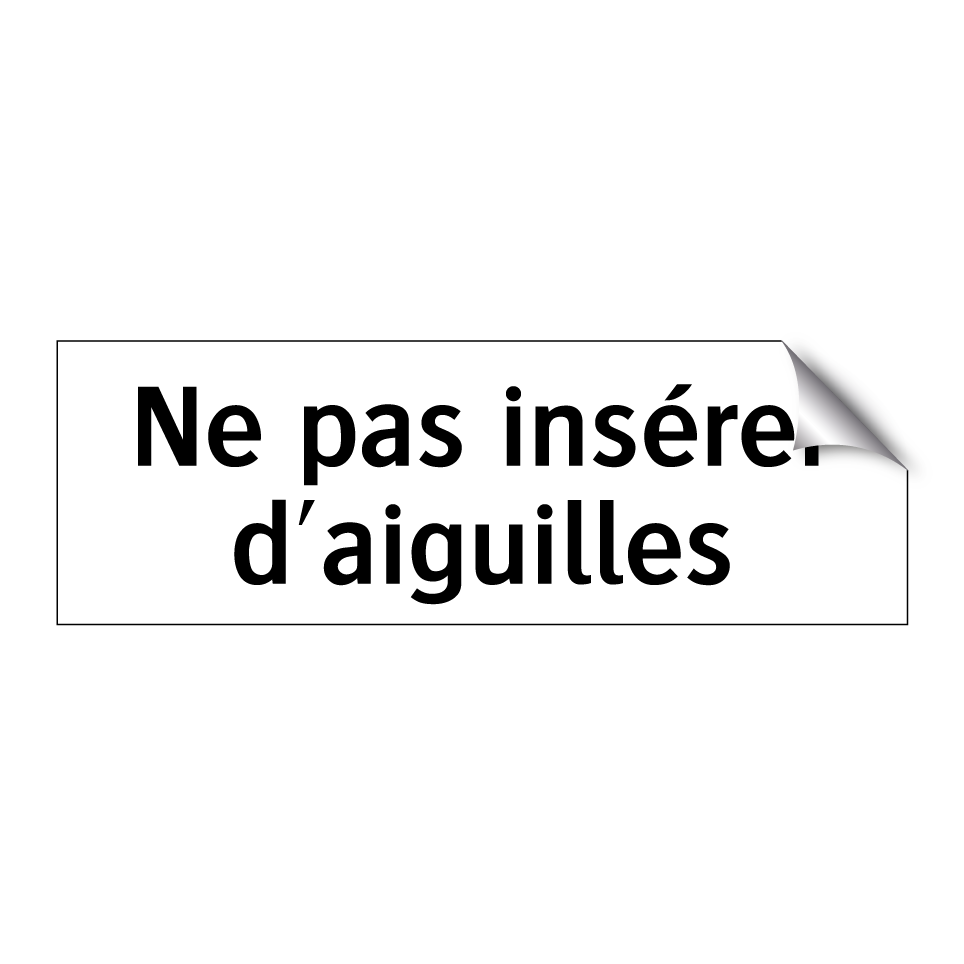 Panneau d'interdiction avec le texte : "Ne pas insérer d'aiguilles"