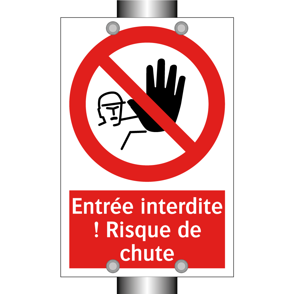 Panneau d'interdiction avec le texte : "Entrée interdite ! Risque de chute" et une symbolique claire.