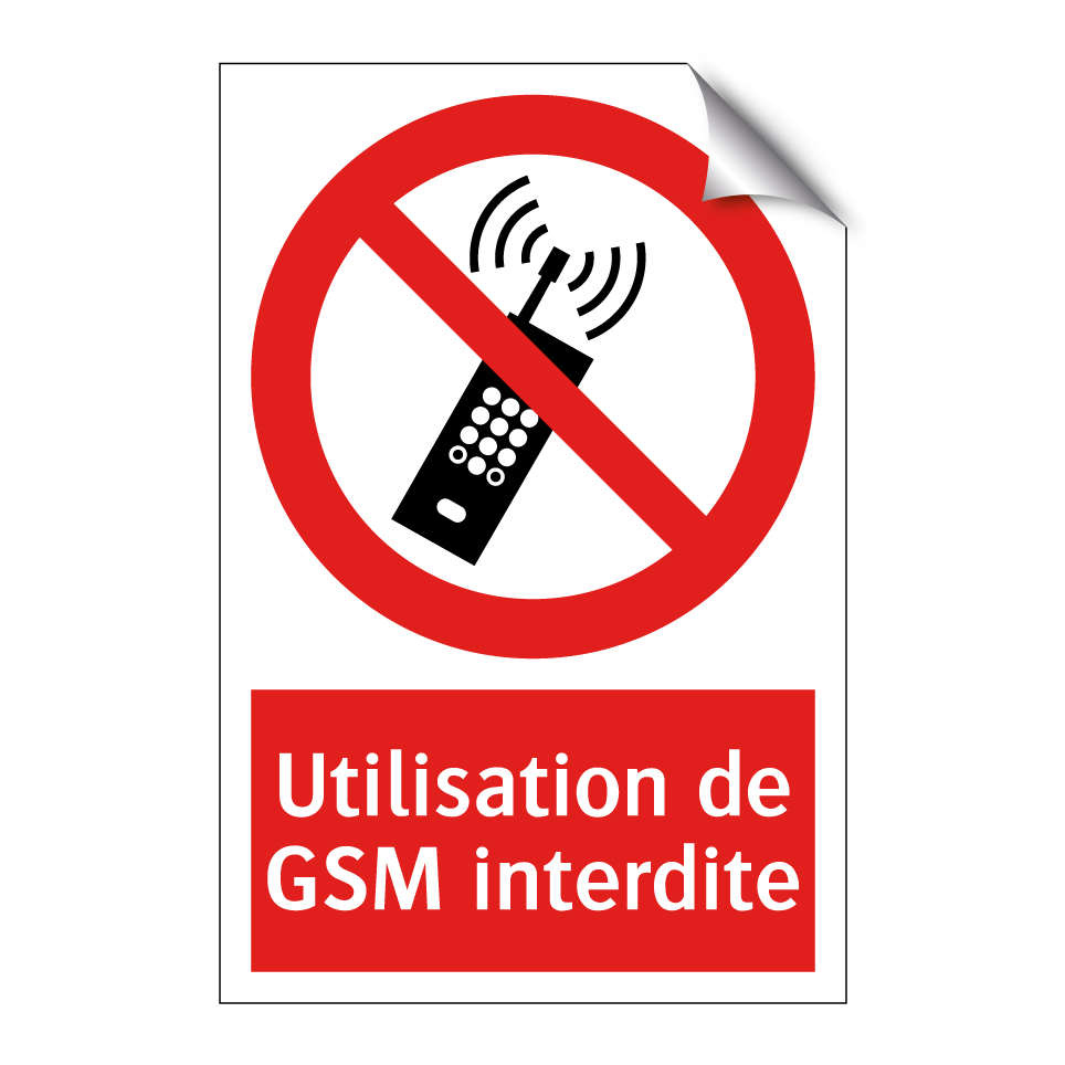 Panneau d'interdiction avec le texte : "Utilisation de GSM interdite" et une symbolique claire.